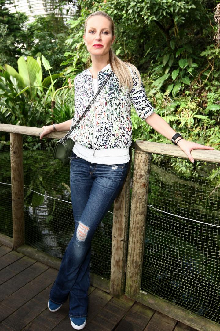Ve stejné botanické zahradě byla minulý měsíc otevřena také výstava o orchidejích. Tu otevřela jiná krásná hvězda Simona Krainová. U modelky by se dal očekávat jistý smysl pro patřičnost, zde bohužel musím vyjádřit zklamání nad zvoleným outfitem, který bych volil pro nákup v Lidlu, nebo když jdu s dětmi na pískoviště a je jisté že se umažu a v tomto oblečení mi to nebude líto. Nějakou dobu se spekuluje, že zvonové nohavice se vrátí. Možná ano, i když v Čechách člověk nemusí být s posledními trendy tak hrr, tady se ještě hodně boubelatých děvčat a křivonohých hochů v jeansech co vypadají jako kostýmy pážat pro film Noc na Karlštejně bude pár sezón znemožňovat. Co ovšem nikdy nebylo trendy, in, nebo alespoň obyčejně hezké, jsou díry na kalhotách. Je to trapné ve dvaceti, nepatřičné ve třiceti a "kraině" nevhodné ve čtyřiceti. Ženy i muži! Oblečení které má na sobě díry a lezou z něj nitě, nikdy nebude vypadat cool, ale vždycky jako hadr, který má díry a lezou z něj nitě.