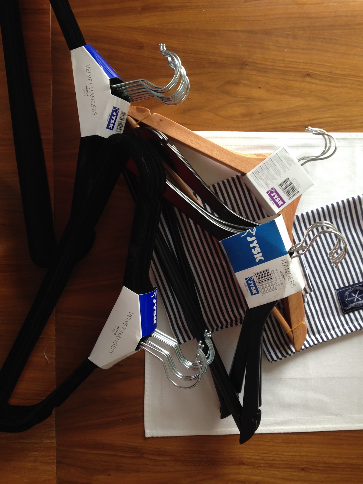 Když plastová ramínka z obchodu časem popraskají nebo se zlámou, je nutno nakoupit ramínka nová. Jak bylo popsáno, na těžké tvarované svršky je důležité mít pevné silnější ramínko, na košili může být užší, naopak je žádoucí velmi úzké ramínko, z toho důvodu, aby nám nezabíralo příliš mnoho místa ve skříni. Deset nebo třicet košil ve skříni je pořádný rozdíl a správný gentleman se kloní spíše k vyššímu číslu, protože mít zásobu vhodných košil je základ. Jelikož jsem chtěl právě nyní koupit větší množství ramínek, aby splňovala popsané parametry a nároky a zároveň působila jednotně ve skříni, zapátral jsem a vyzkoušel ramínka z prodejny JYSK. Koupil jsem dřevěná černá lakovaná, dřevěná přírodní lakovaná a úzká černá se semišovým povrchem. Kolik toho semišový povrch vydrží nevím, zatím ho úspěšně zkouším, nešoupe se ani nebarví. Ano uznávám, nebyl to nejzábavnější článek, ale tak jako vůz nejede bez benzínu, pes neštěká bez příčiny, cigareta nehoří bez zapalovače, bota nedrží bez tkaničky, šatník bez ramínka, není šatník.